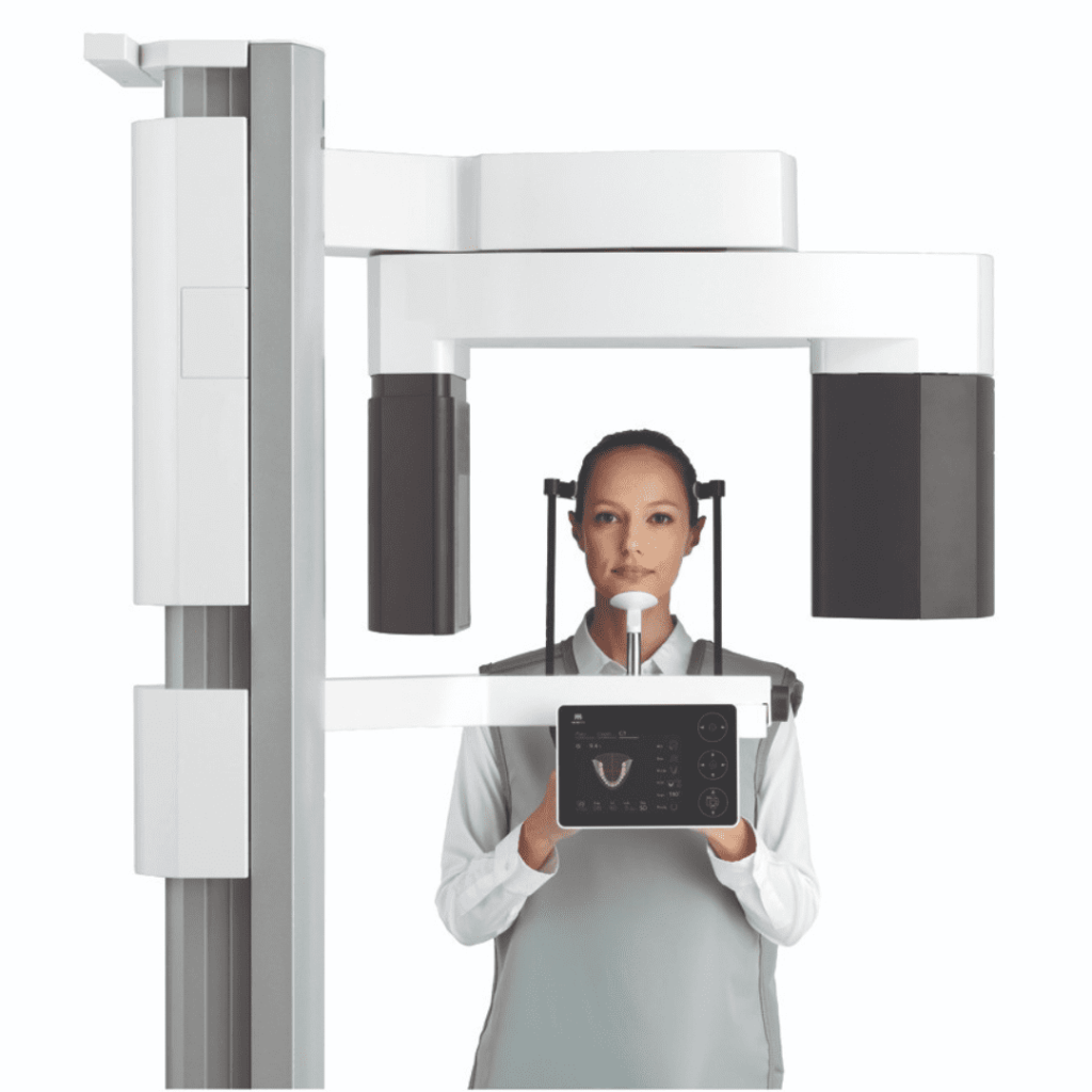 Exame realizado com o paciente sentado, duração entre 10 e 40 segundos, possibilita a visualização tridimensional do complexo buco-maxilo-facial, permitindo avaliar milimétricamente todas as estruturas de forma precisa e segura. Indicações: Avaliações para cirurgia de implantes dentários, localização de dentes retidos, prototipagens, cirurgias, entre outras.